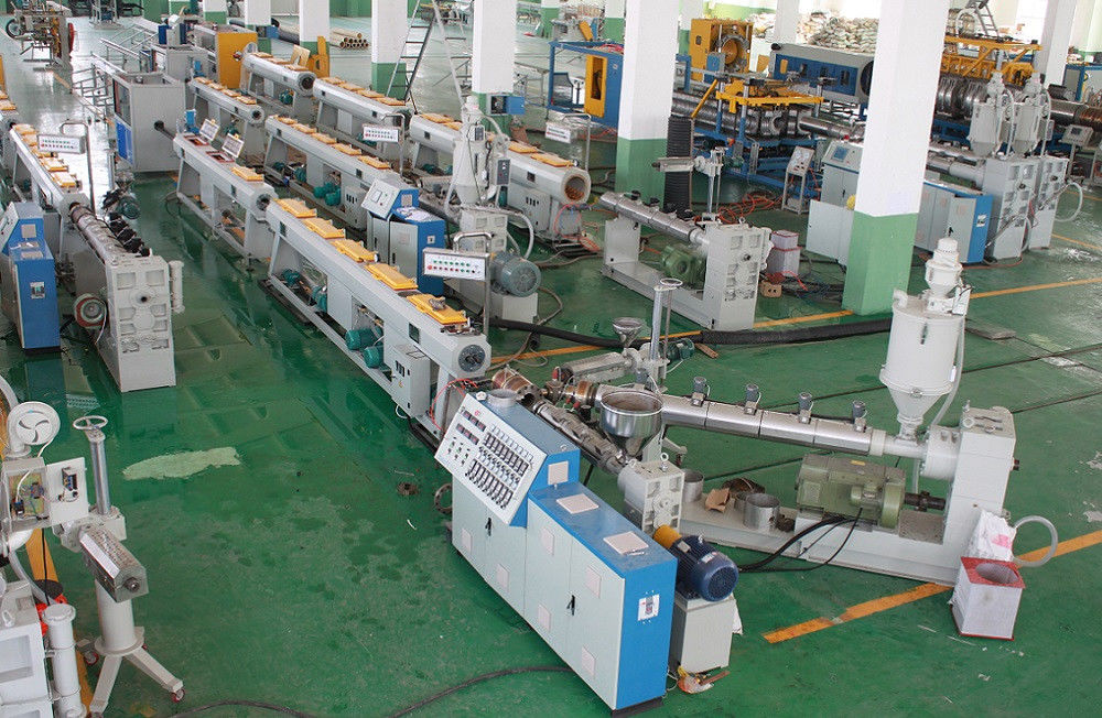 এই পাইপ এক্সট্রুশন লাইন প্রধানত একক স্ক্রু extruder, molds, ভ্যাকুয়াম জল ট্যাংক calibrating, স্প্রে জল কুলিং ট্যাংক, হোল অফ মেশিন, কাটিয়া মেশিন (বা বায়ু) এবং overturning বন্ধনী অন্তর্ভুক্ত।