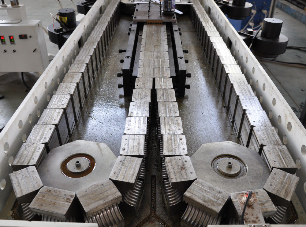এই সিগন্যাল প্রাচীর rugেউখেলান পাইপ এক্সট্রুশন লাইনে মূলত এক্সট্রুডার, rugেউতোলা তৈরির মেশিন, ডাই হেড এবং মোল্ড ব্লক, শীতল সরঞ্জাম, গণনা মেশিন এবং উইন্ডিং মেশিন রয়েছে।এটি অবিচ্ছিন্নভাবে বহু ধরণের ব্যাস একক প্রাচীর rugেউতোলা পাইপ উত্পাদন করতে পারে।