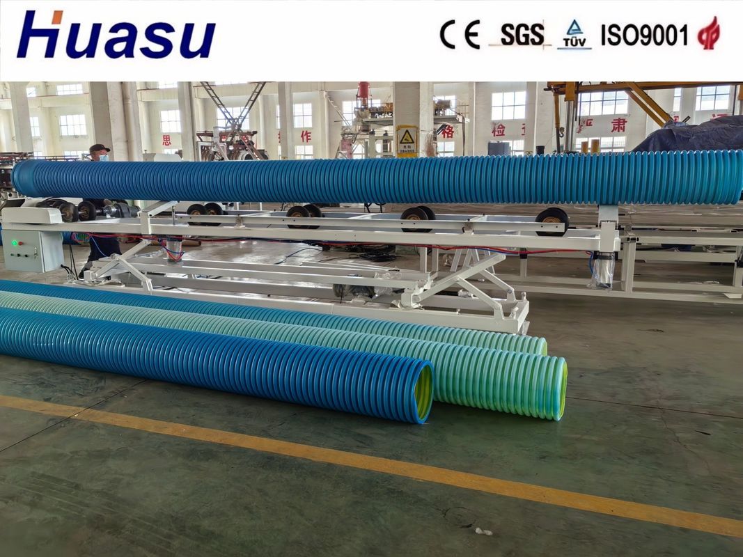 ডাবল ওয়াল ঢেউখেলান পাইপ লাইনটি শানডং হুয়াসু দ্বারা তৈরি আপগ্রেড করা পণ্যের তৃতীয় প্রজন্মের প্রতিনিধিত্ব করে। এই সর্বশেষ সংস্করণে উল্লেখযোগ্য উন্নতি হয়েছে, আগের মডেলের তুলনায় এক্সট্রুডারের আউটপুট এবং পাইপের উৎপাদন গতি 20-40% বৃদ্ধি পেয়েছে। এই অগ্রগতিগুলি অনলাইন বেলিংকে আরও মসৃণ করে তুলেছে, ঢেউখেলান পাইপ পণ্যের প্রিমিয়াম গুণমান এবং কর্মক্ষমতা নিশ্চিত করে।